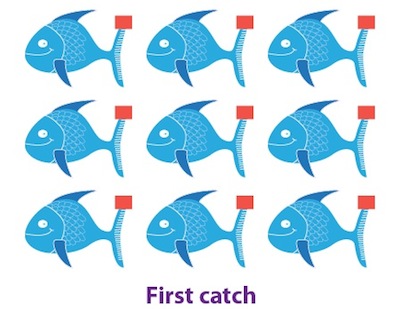 the dead fish, however your fellow ecologists would probably frown upon this method. So, what you can do instead is catch a bunch of the fish, tag them and release them. Let's imagine, for example,