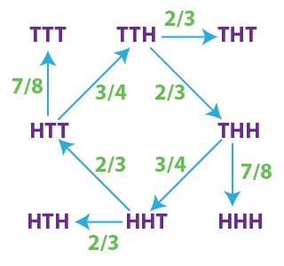 mathematician Walter Penney, the game consists of two players choosing a sequence of three coin tosses, such as TTT or HTT. A coin is then tossed repeatedly and the player whose sequence appears first is the winner. For example, if the sequence of tosses was H H H T H H T H T T then HTT would have won against TTT.