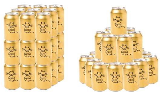 In fact, it doesn’t matter – each tower contains 27 cans. This is no coincidence. No matter how many levels you build into the two towers, one cubical and the other hexagonal, they will always contain the same number of cans.