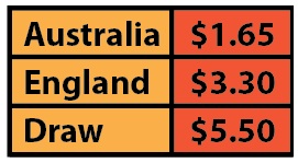 Puzzles to Ponder: Suppose you make the following three bets on the Ashes: $18.15 on Australia; $9.08 on England; and $5.45 on the draw. So, the total wagered is $32.68. How did we come up with those bet amounts, and how much money will be returned to you when the Ashes is decided? How much should you wager on each of the possible outcomes to ensure you’ll receive back $100?