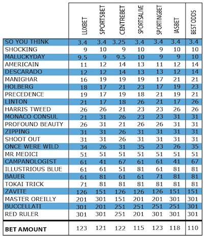 So, what should you do? If you have simply decided on the horse you fancy, then you just choose the best site for that horse: Sportsalive for Maluckyday, Centrebet for Americain, and so on.