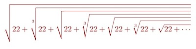 Hard 1. Four horses enter the prestigious MathsMasters Cup. Assuming that there are no dead heats, how many different ways are there for the horses to cross the finish line? What if we include the possibility of dead heats? Hard 2. The fictional blockbuster Tropic of Calculus has just been published. Its pages are numbered starting with page 1, and there are 2893 digits used to number all the pages. How many pages does the book have? Hard 3. Start with the numbers 1, 1/2, 1/3, ... , 1/100. Choose any two numbers M and N from this list and replace them by the single number M + N + M x N. Repeat the process until only one number is left. What is that number? Hard 4. What is the value of the following root monster? Hard 5. Burkard and Marty walk up a moving escalator. They start together on the bottom step of the escalator, and then Burkard takes two steps for each step that Marty takes. Burkard steps off the escalator on his 28th step, and Marty does so on his 21st step. How many steps of the escalator are visible at any one time? Hard 6. At the MathsSnacks fast food outlet, you can order Kitty Nibbles in boxes of 6, 9 and 20. If you wanted exactly 25 Kitty Nibbles, for example, then no selection of boxes will satisfy you. What is the largest number of Kitty Nibbles such that no selection of boxes will give that exact number? Hard 7. There are 100 playing cards on the tabletop, and exactly 23 cards are face up. Blindfolded, you want to separate the cards into two groups, each with the same number of cards facing up. How do you do it? Hard 8. Ted and John play a game of placing $2 coins on a flat plate. The coins cannot overlap, and the winner is the person to place the last coin to fit on the plate. Ted goes first. Who has a winning strategy, and what is it? Hard 9. A castle is surrounded by a moat which is 20 metres wide. The brave Sir Isaac Newton wants to enter the castle, to rescue the fair maiden. He has only two planks, both of length 19 metres, and no nails. How can Sir Newton cross the moat? Hard 10. Emmy Noether's car travels 120 km/h downhill, 80 km/h on level ground and 60 km/h uphill. It takes Emmy 6 hours to get from Functionville to Alegbraton, and 4 hours to return. How far is it between the two towns?